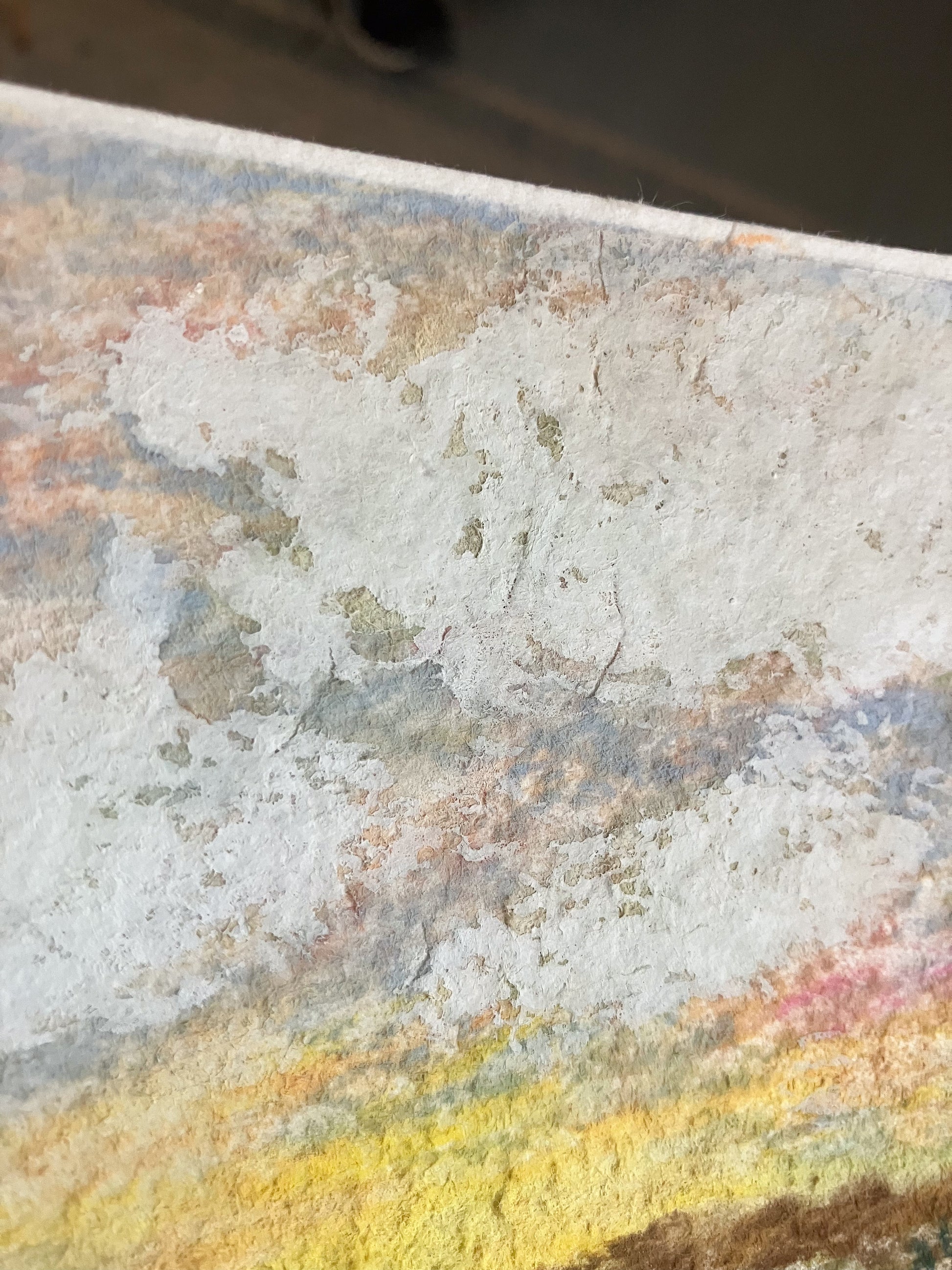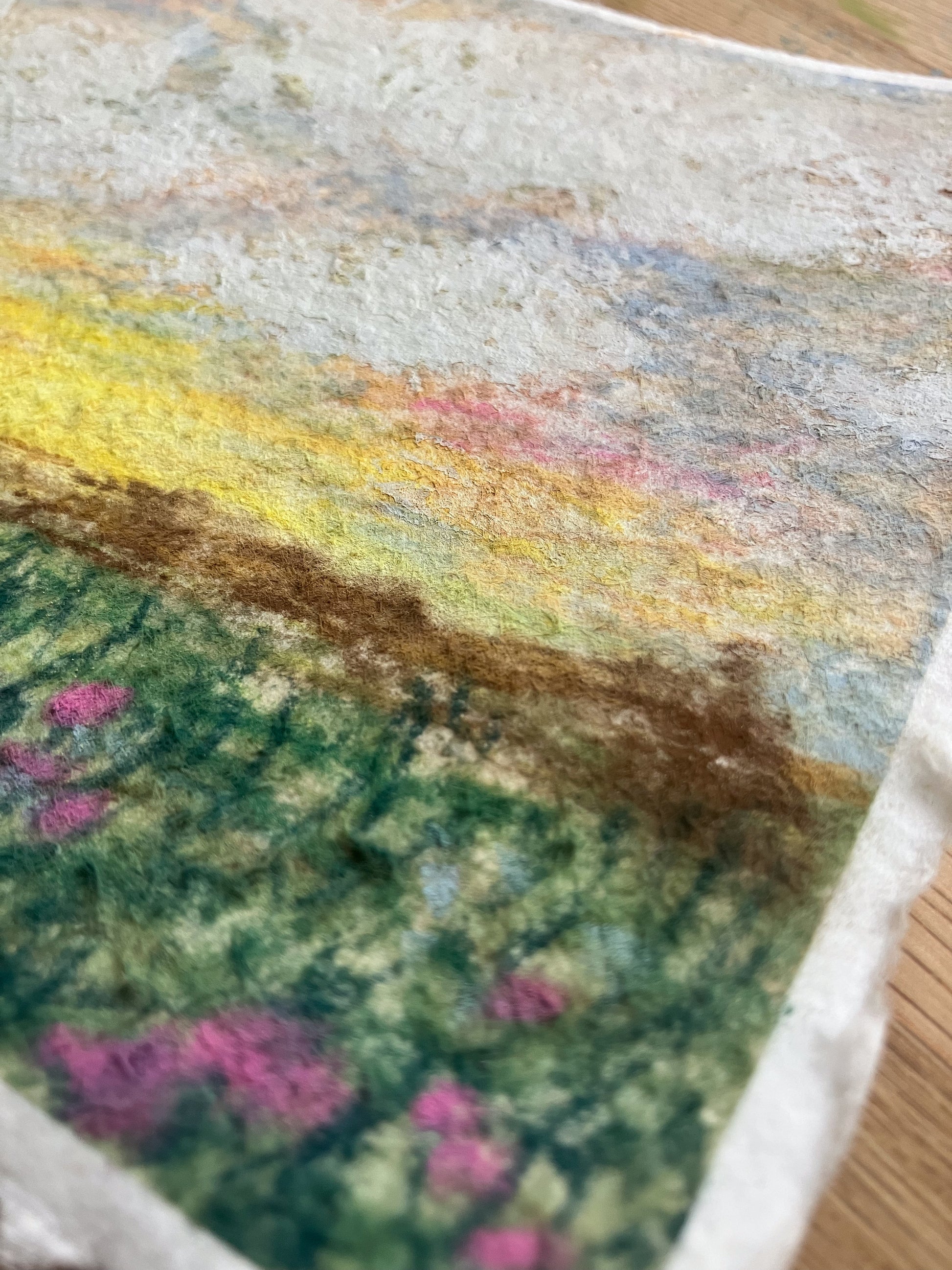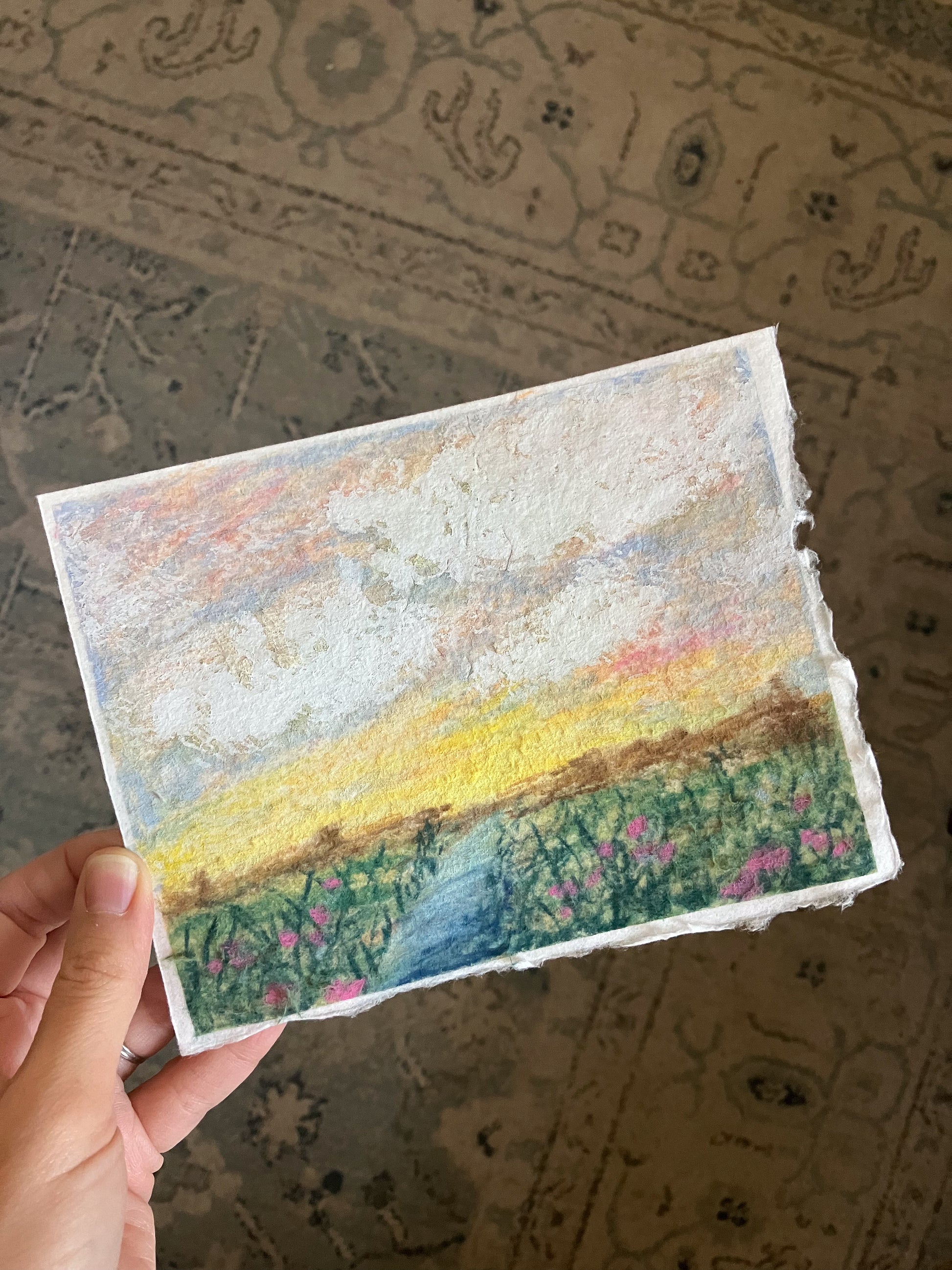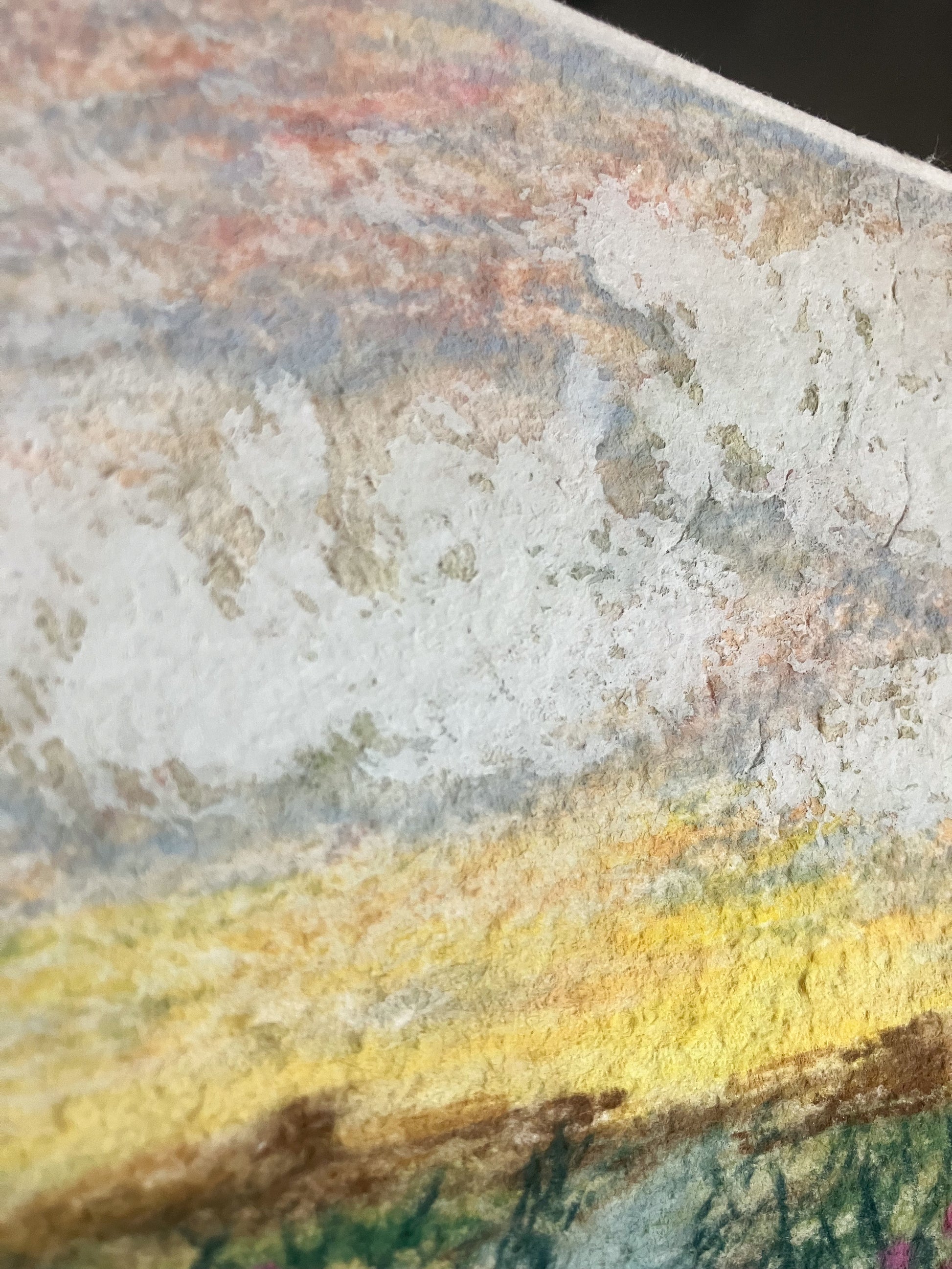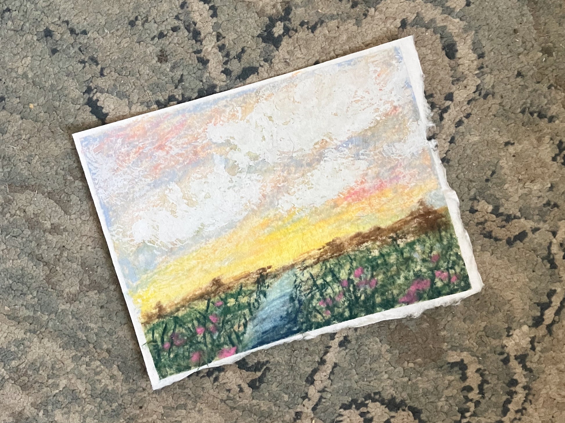 An original soft pastel and gouache painting on beautiful, soft handmade paper with deckled edges.