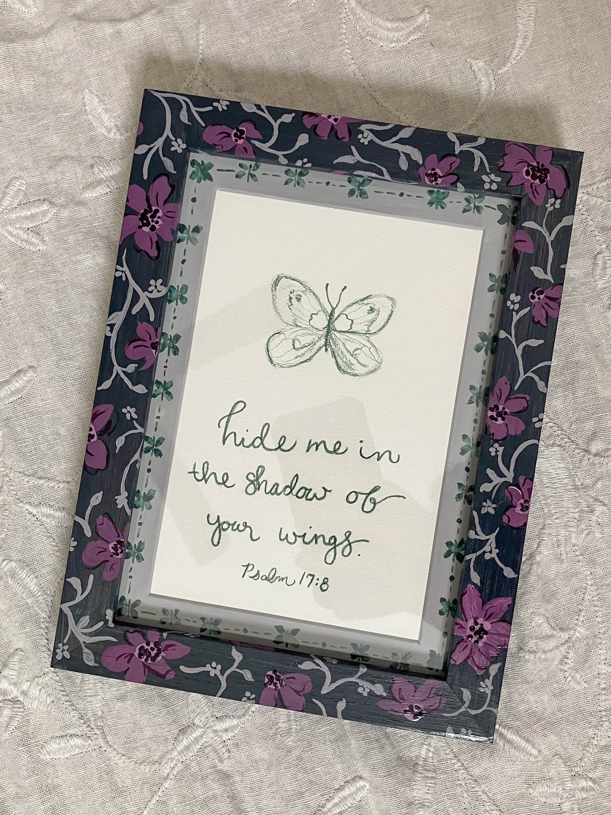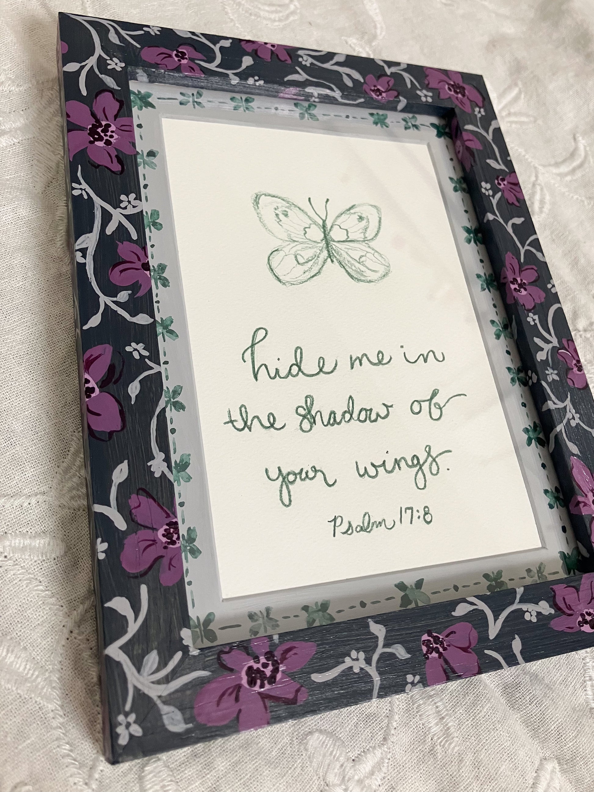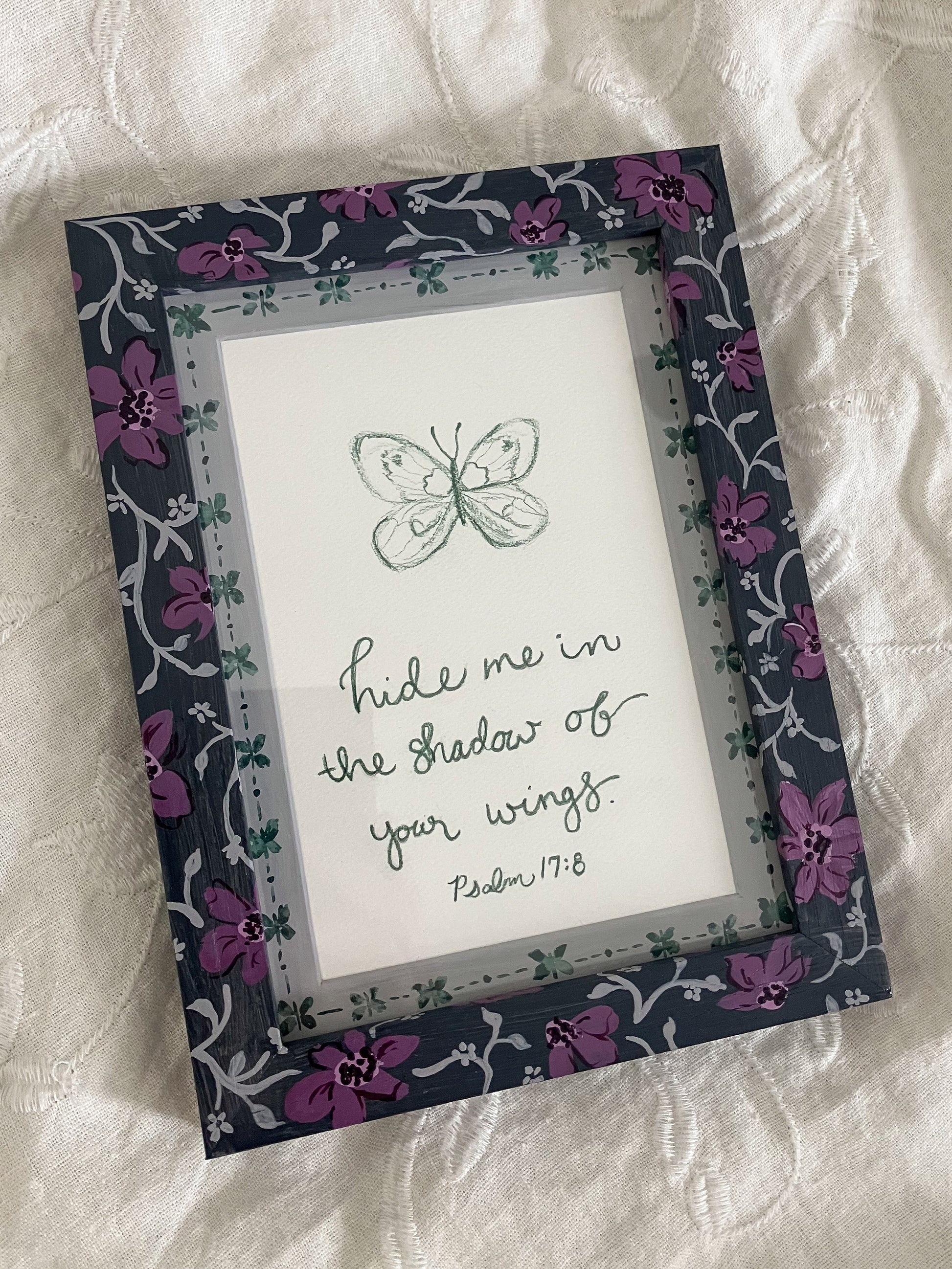 Features Psalm 17: 8 "hide me in the shadow of Your wings."