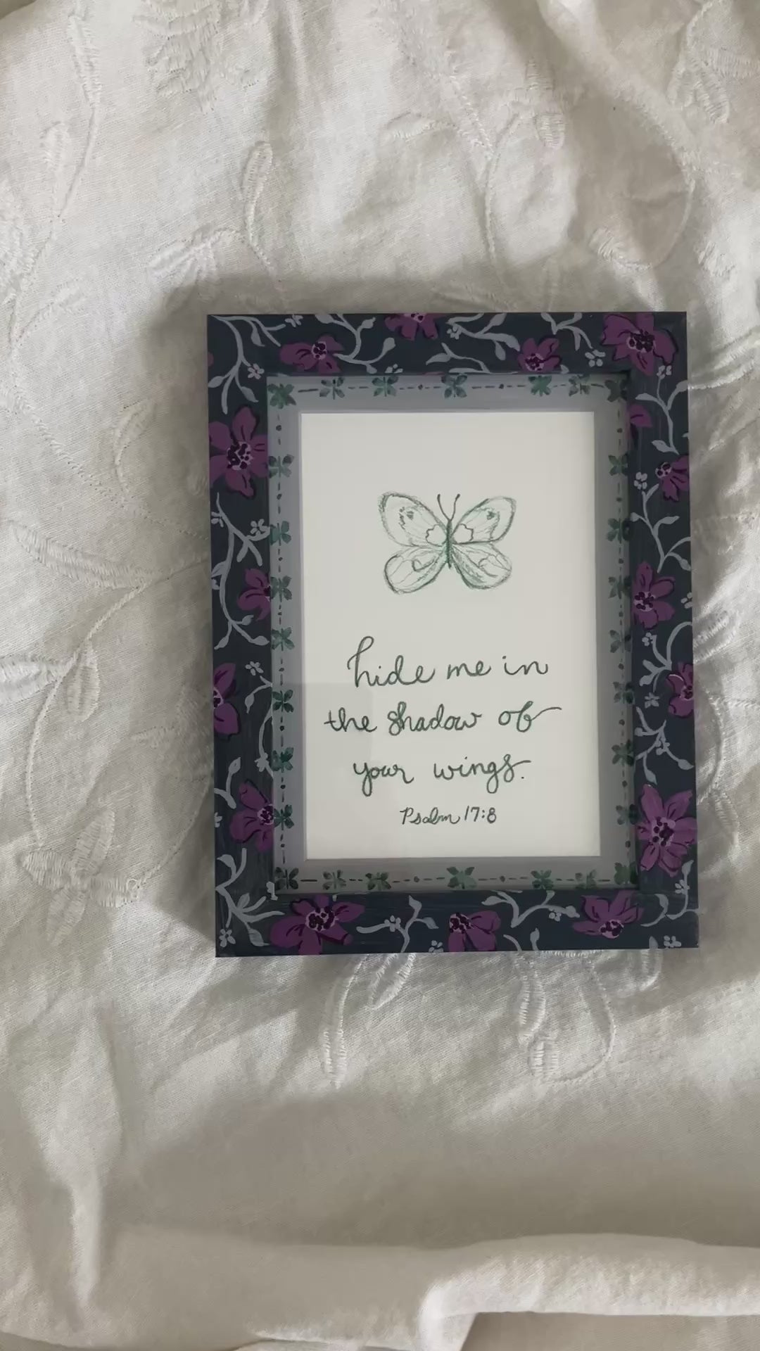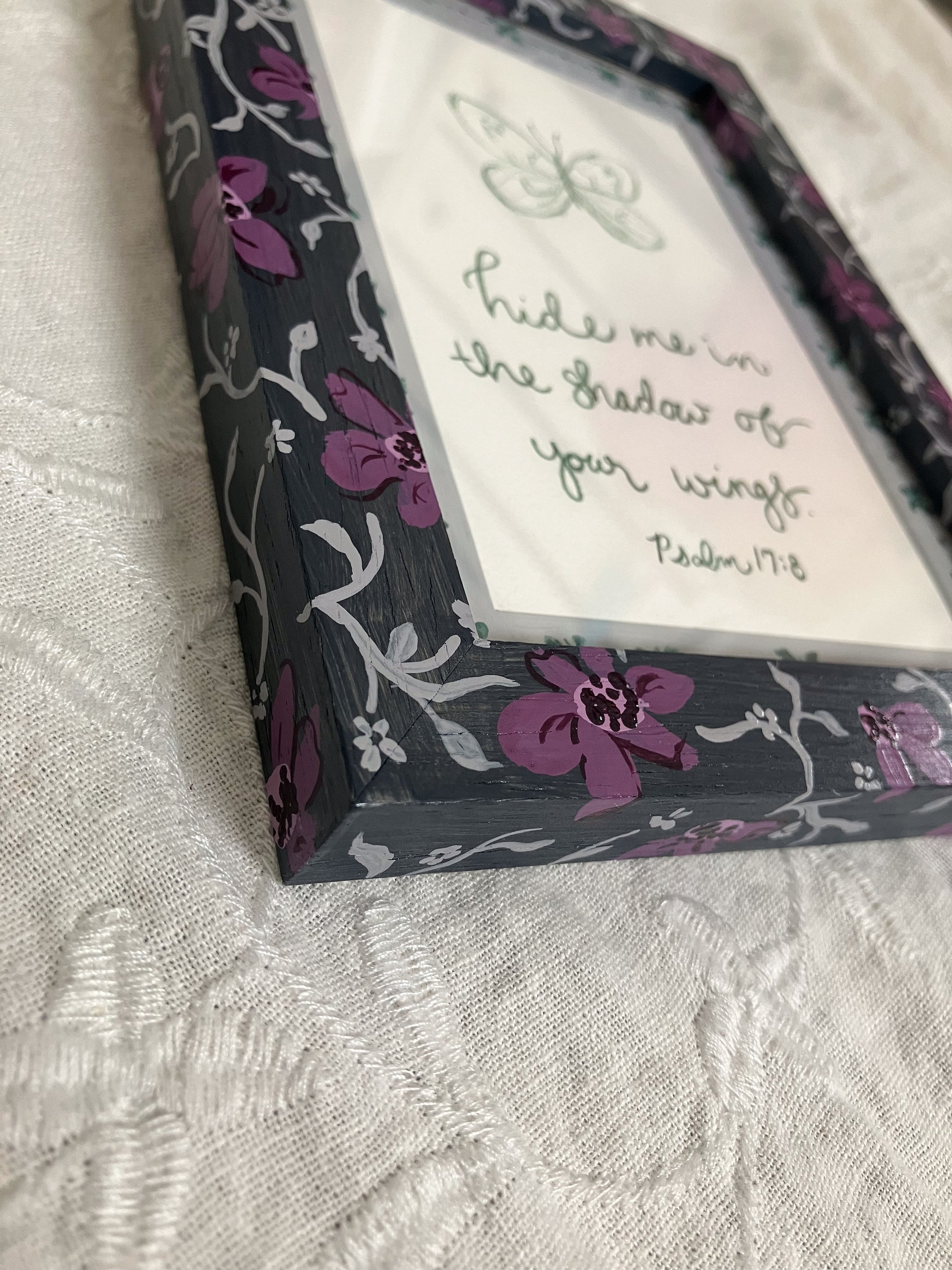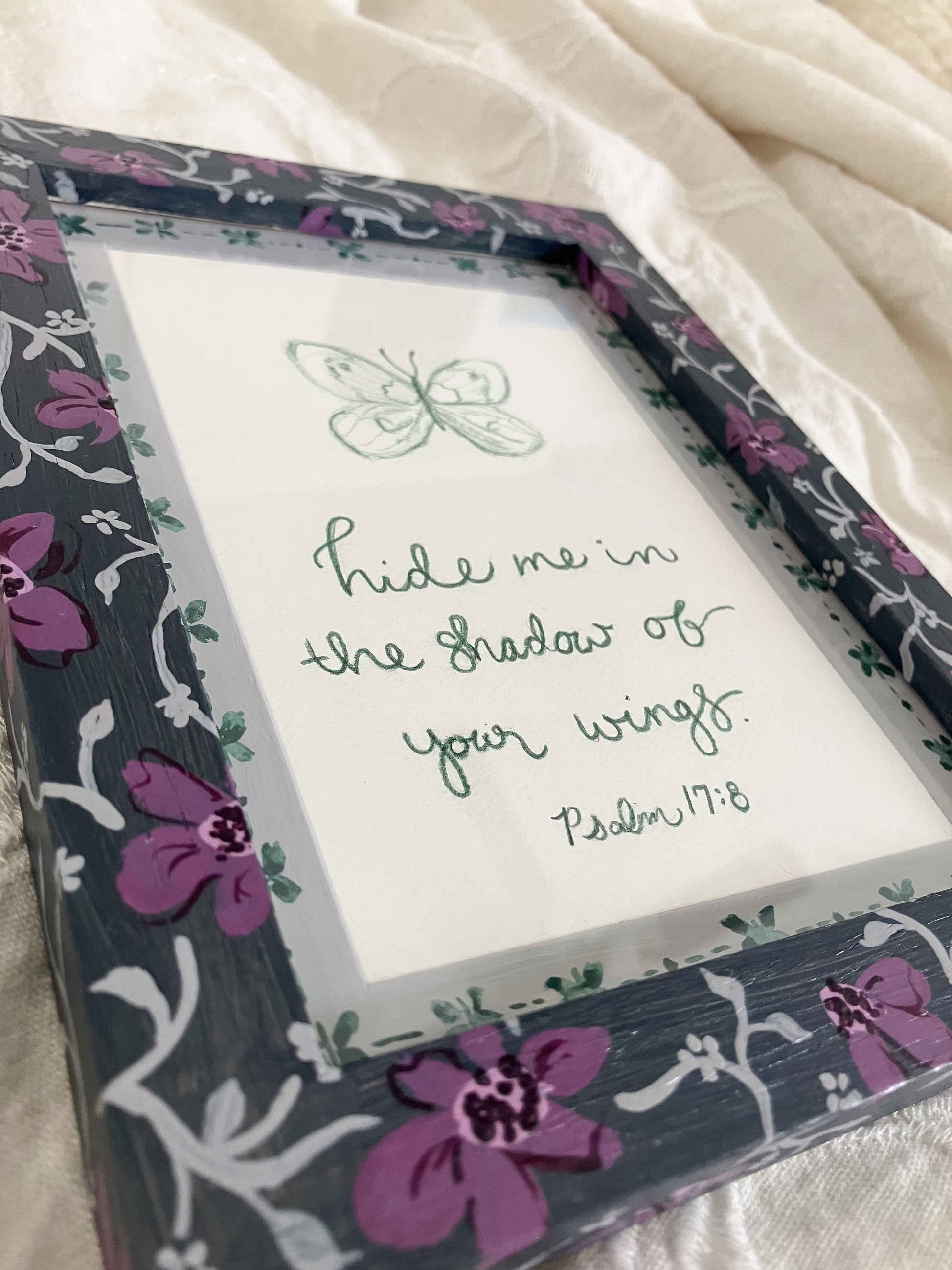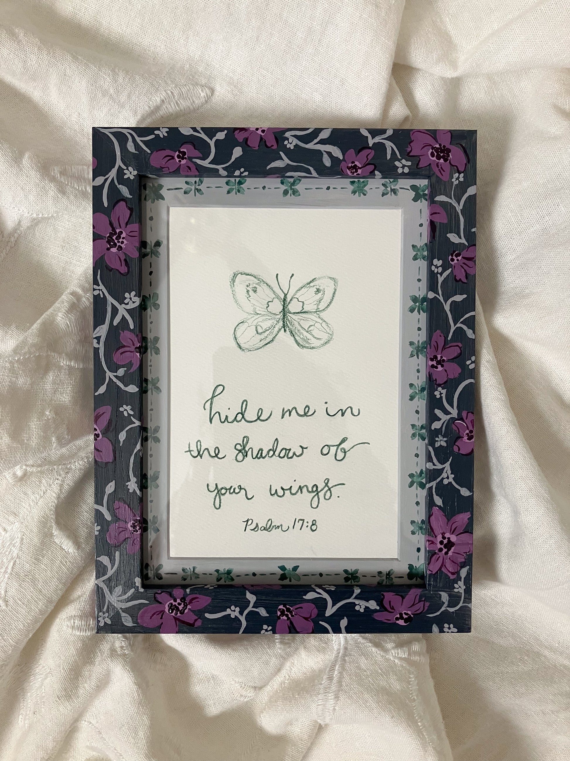 Features Psalm 17: 8 "hide me in the shadow of Your wings."