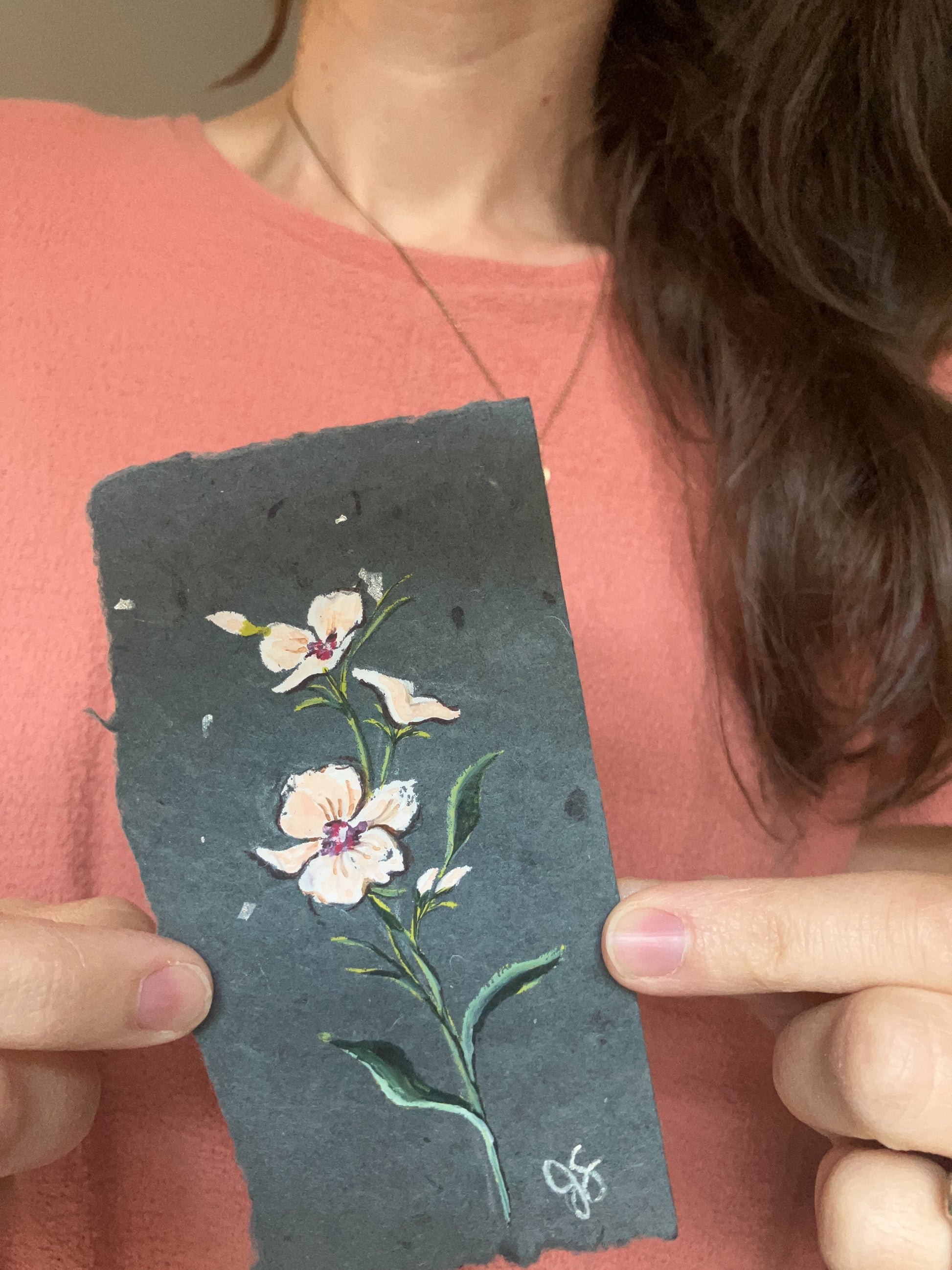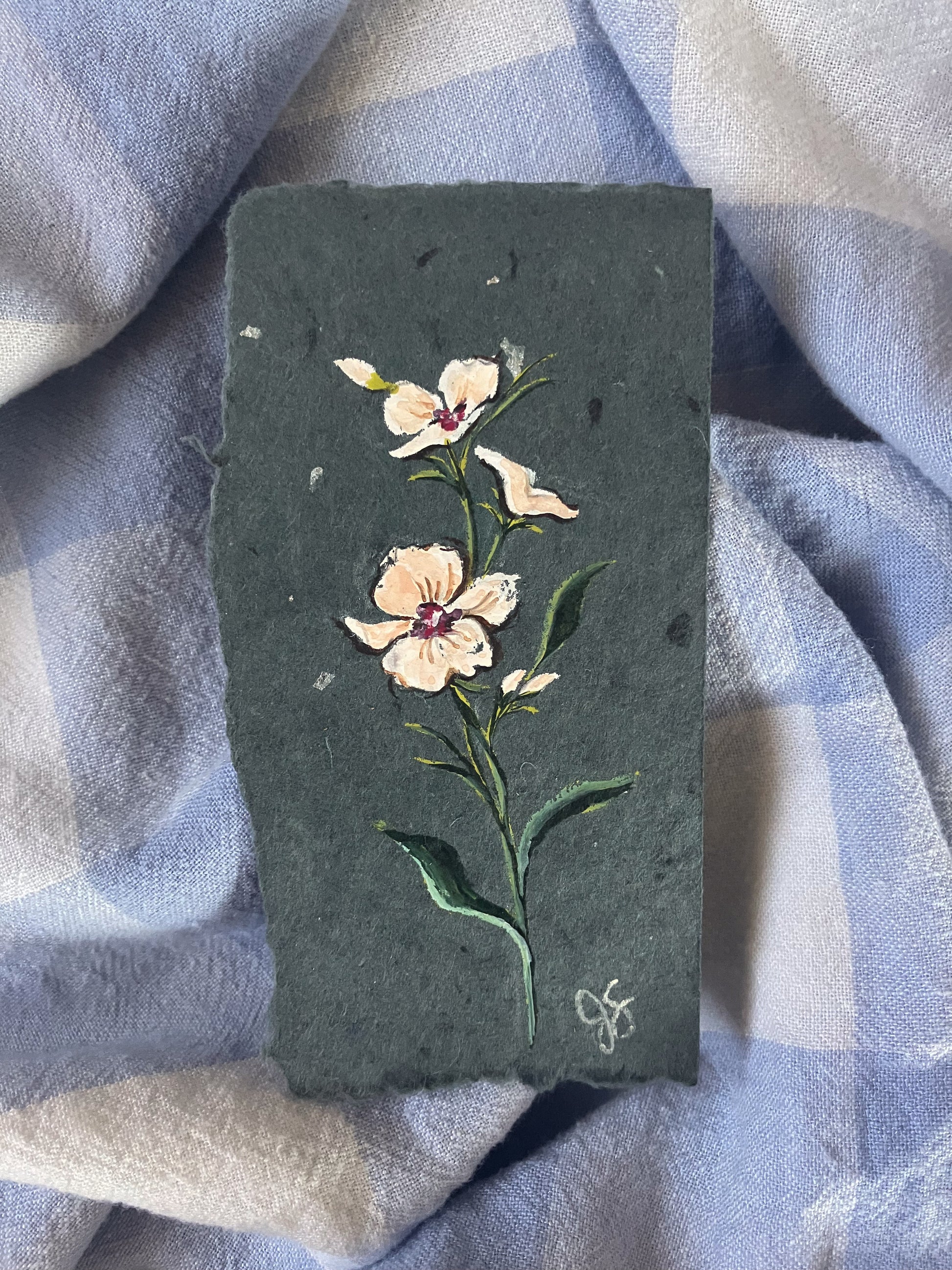 An original gouache and soft pastel painting of a dainty phlox flower. On soft, handmade paper with silver flecks.