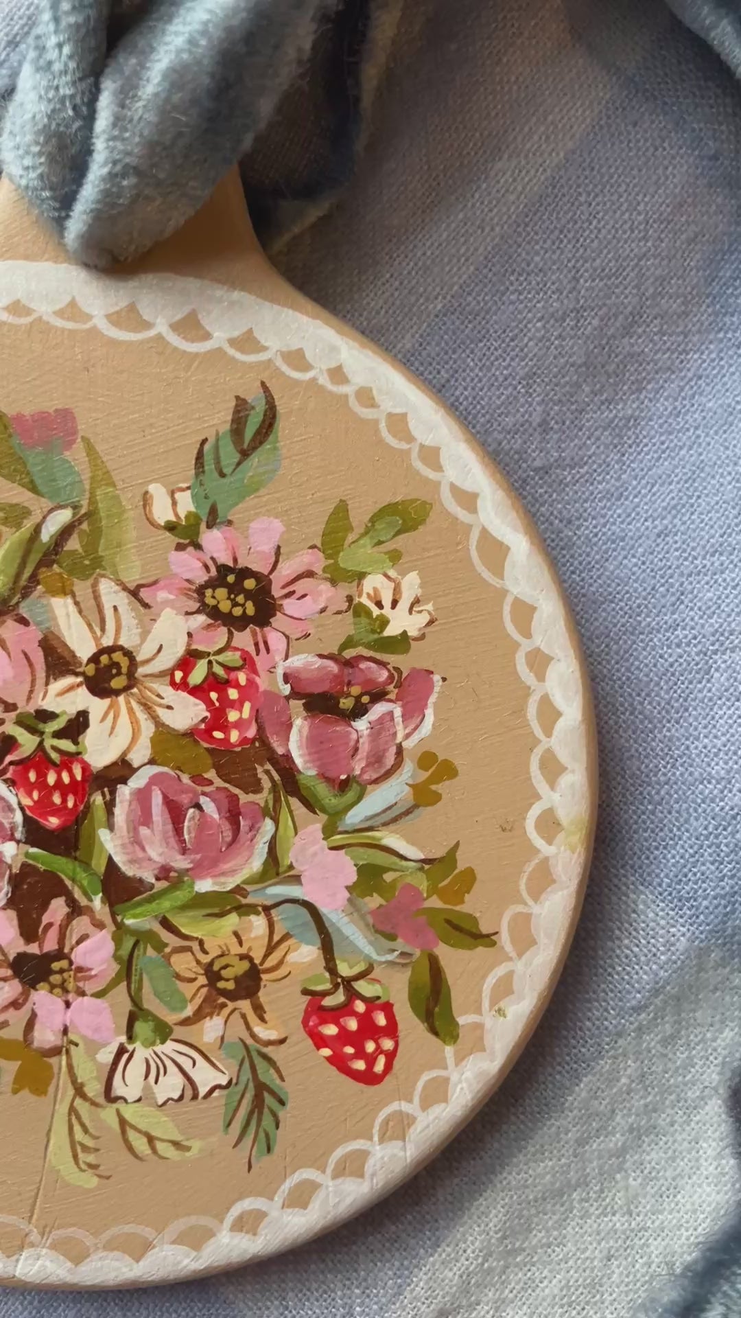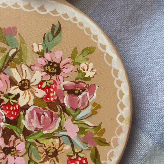 Painted with watercolor and gouache and fixed with a sealant. Please handle with extreme care and keep very far away from moisture.